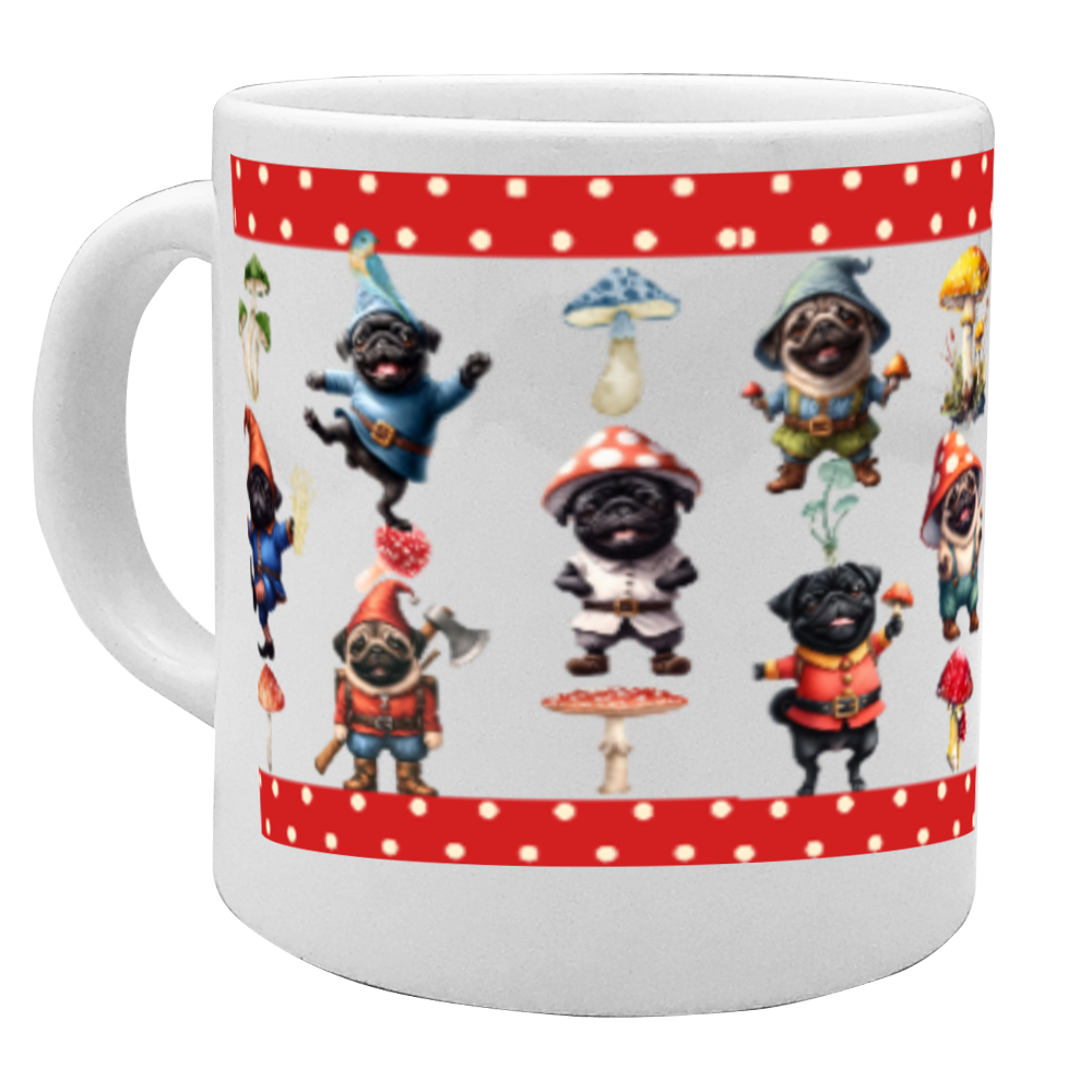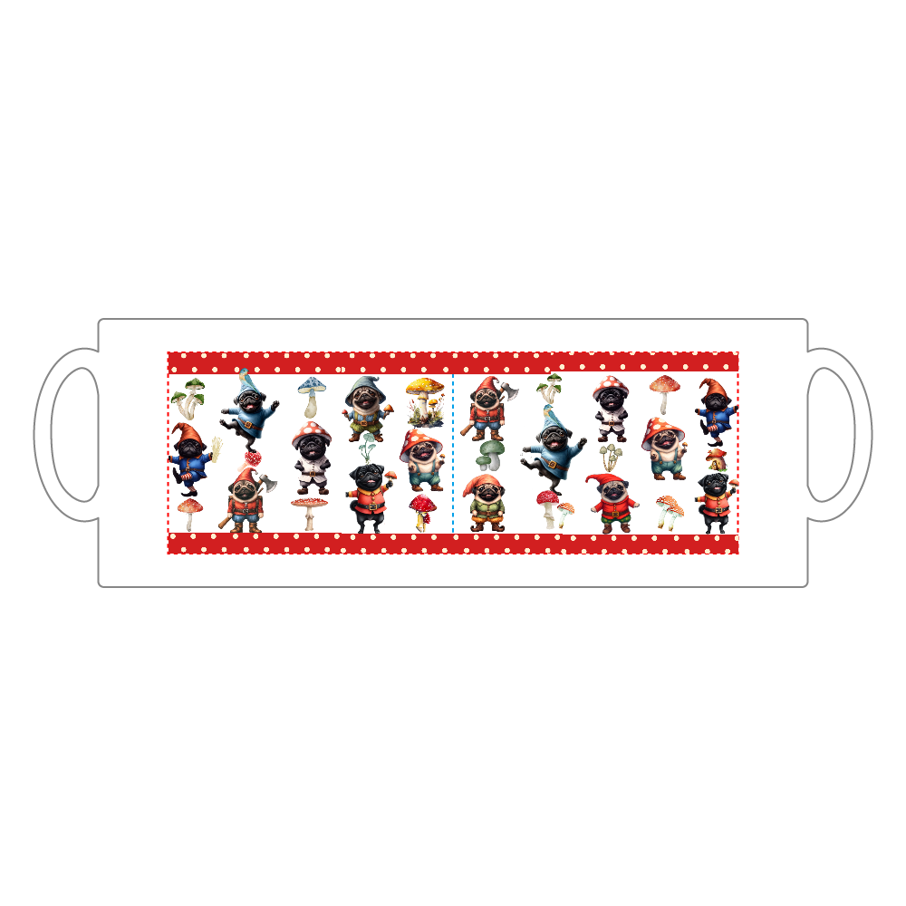 七人の小人パグ陶器ストレートマグカップ赤リボン