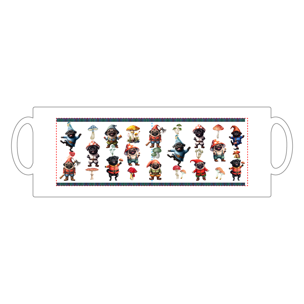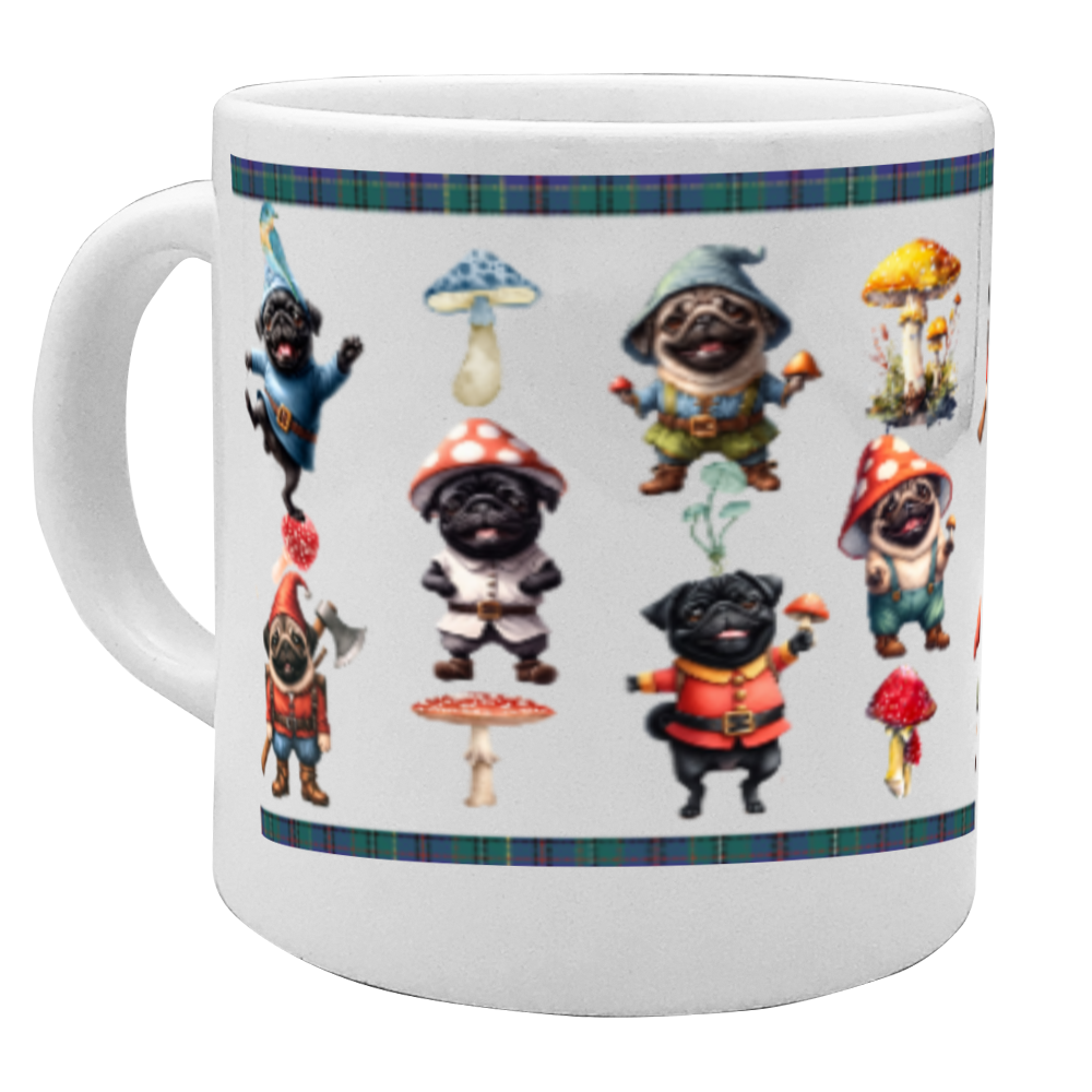 七人の小人パグ陶器スレートマグカップ 青リボン