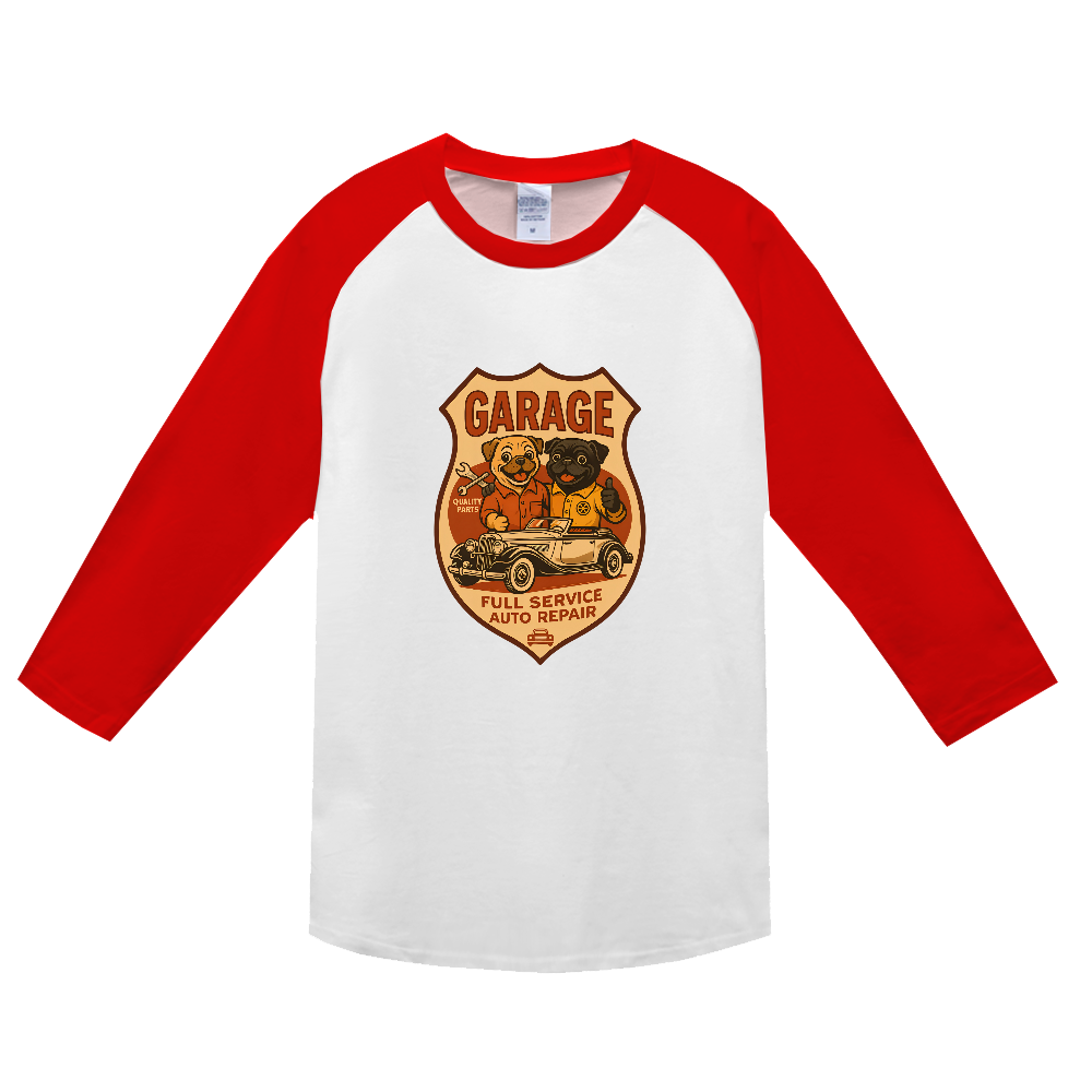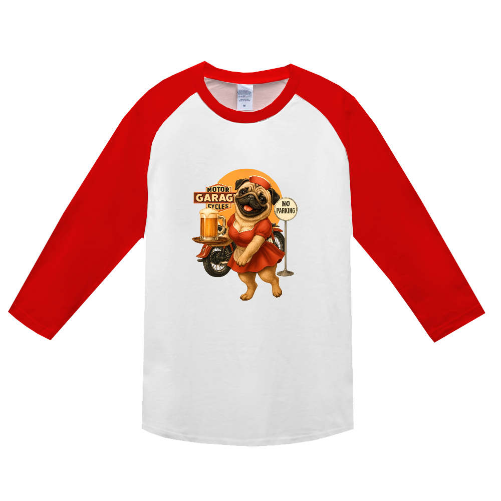 Pugレトロガレージ3/4袖ベビーウエイトTシャツ