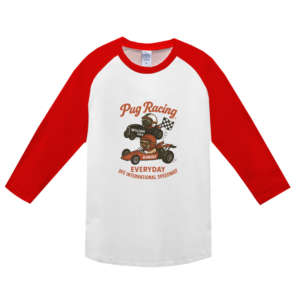 Pugレトロレーシング3/4袖ベビーウエイトTシャツ