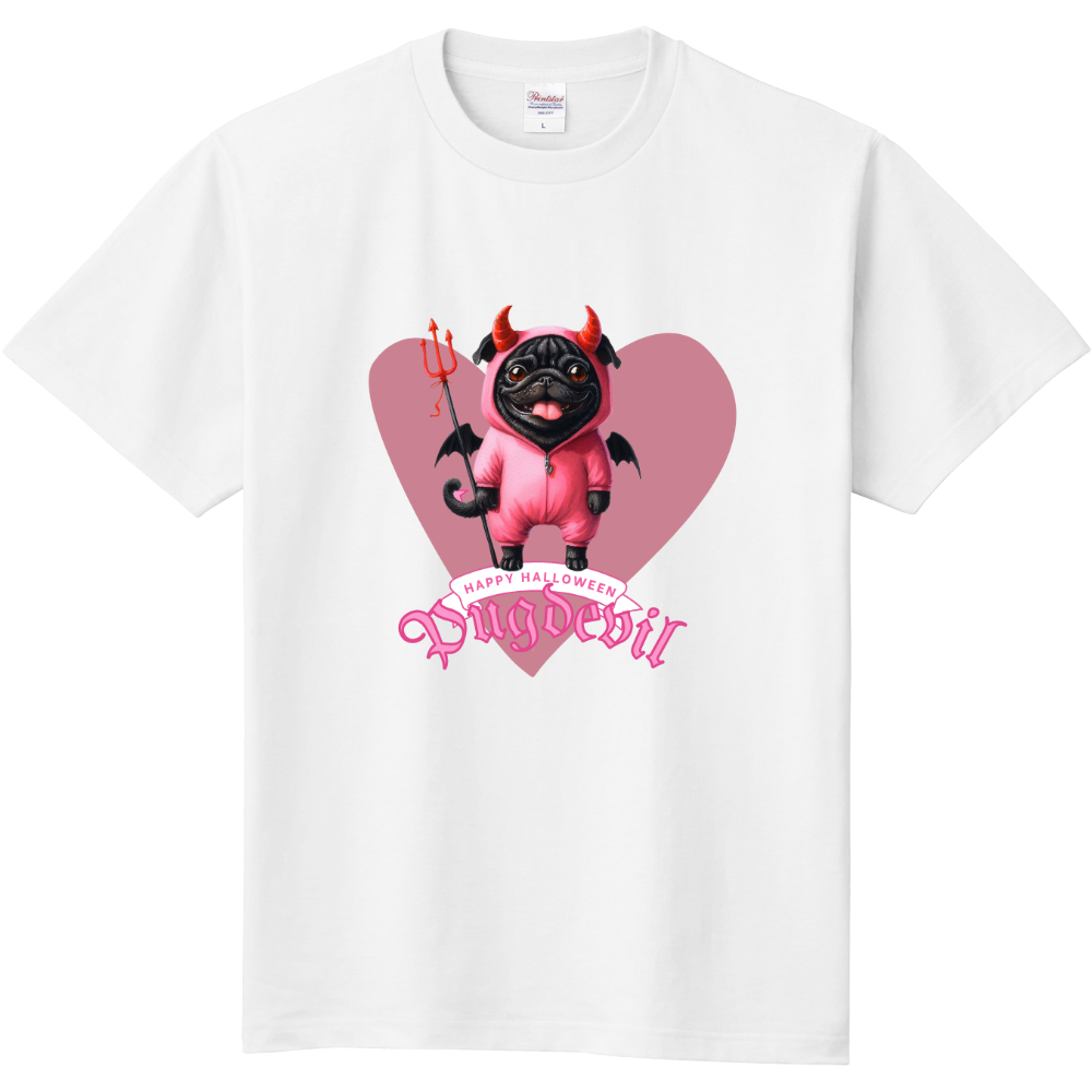 ハロウィーンデビルハート パグ1定番ティーシャツ