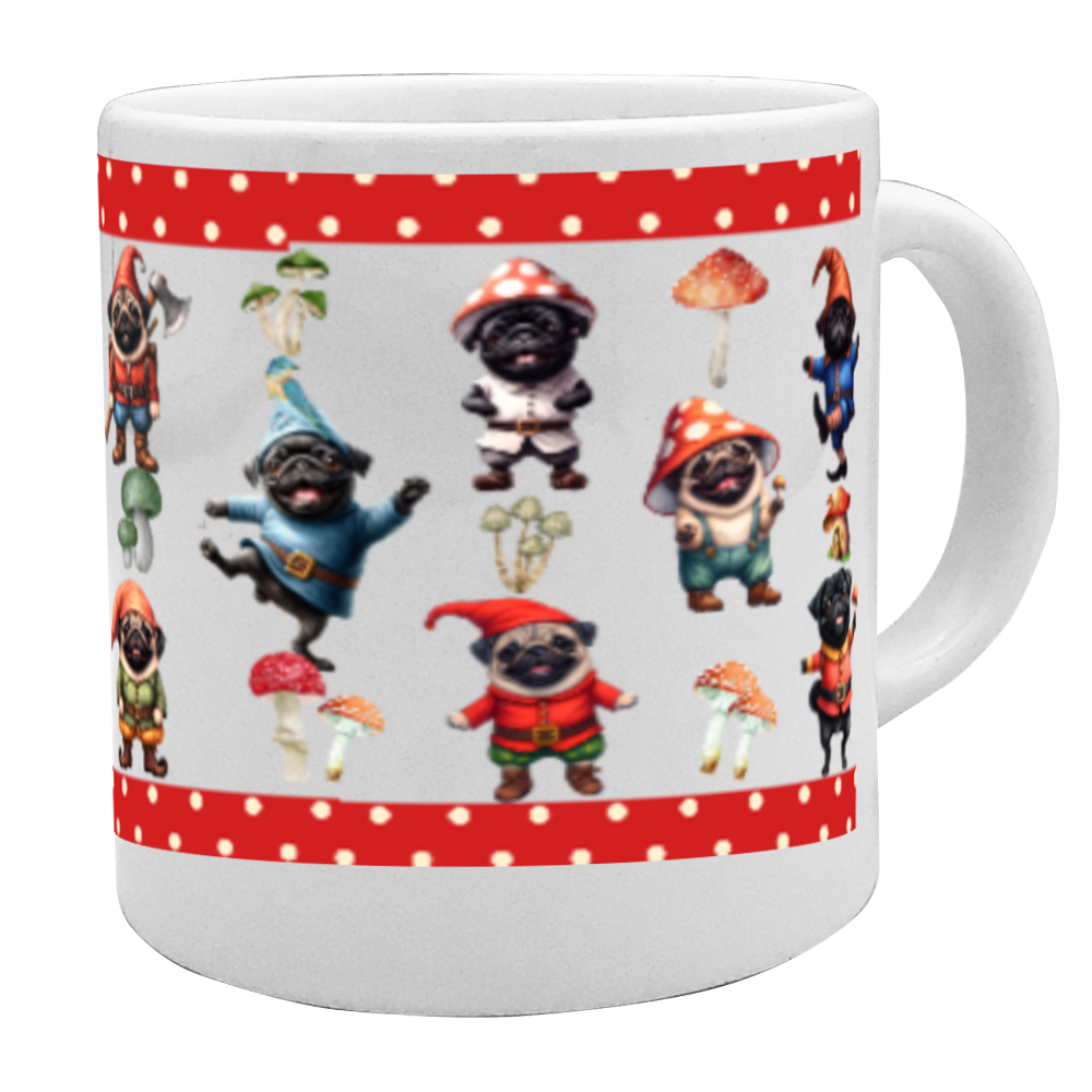 七人の小人パグ陶器ストレートマグカップ赤リボン